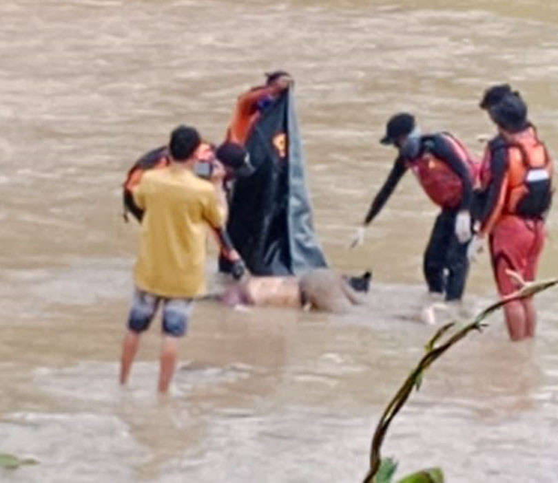 Babinsa Koramil 1315-05 Boliyohuto Bantu Evakuasi Korban Hanyut Di Sungai Paguyaman Desa Juriya Kecamatan Bilato