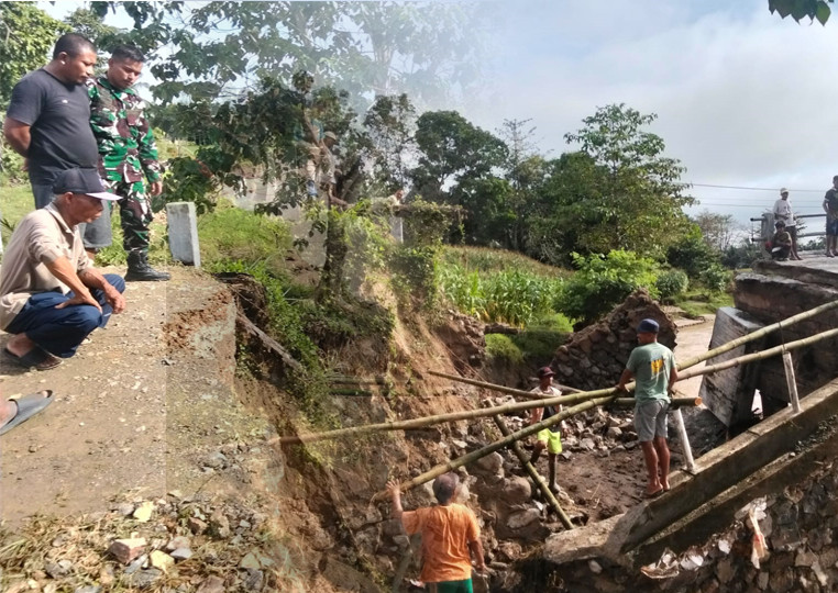 Langkah Cepat Babinsa Koramil 1315-05 Boliyohuto Tinjau Jembatan Sidomukti Ambruk Akibat Hujan Deras Guyur Gorontalo