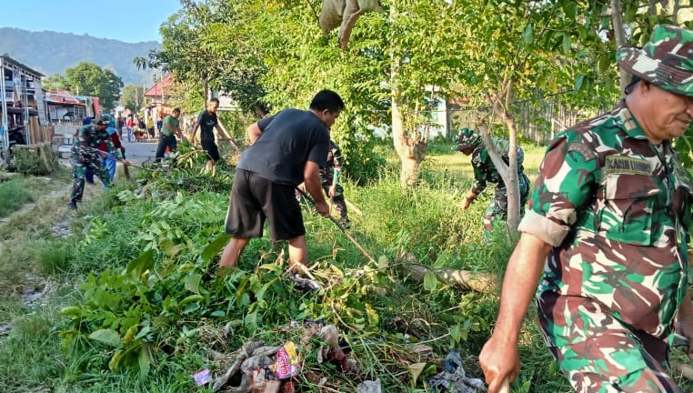 Gotong Royong Warnai HUT TNI Ke-80 di Desa Ilohungayo, TNI dan Masyarakat Bahu Membahu Jaga Kebersihan