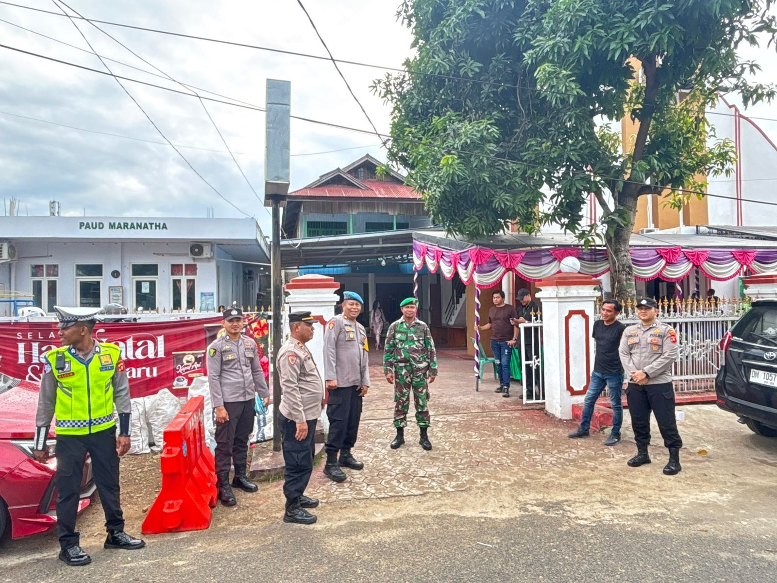 Gorontalo, 25 Desember 2025 – Personel Koramil 1315-01/Telaga bergerak sejak pagi melaksanakan pengamanan perayaan Ibadah Natal di Gereja Torsina Kompi B 713/ST, Desa Tuladenggi, Kecamatan Telaga Biru, Kabupaten . . . 0