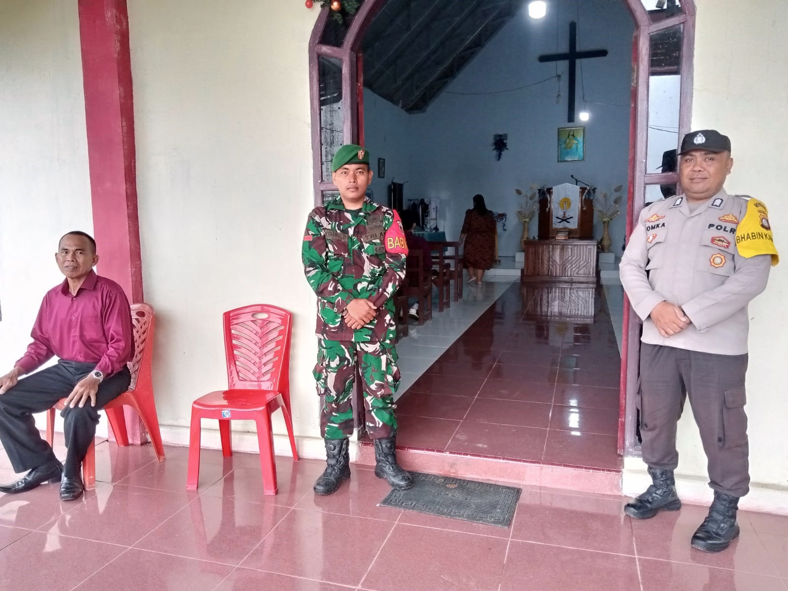 Babinsa 1315-05 Boliyohuto Dan Polsek Pastikan Keamanan Perayaan Ibadah Natal Gereja Hosiana Gandaria Berjalan Aman