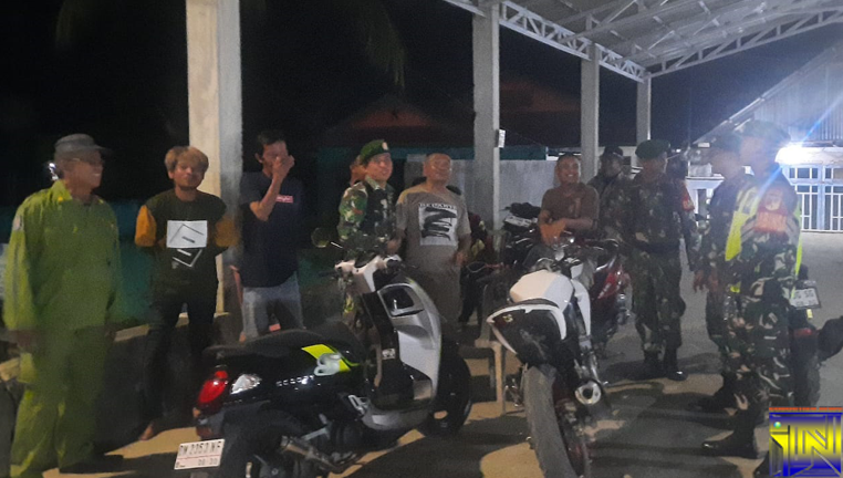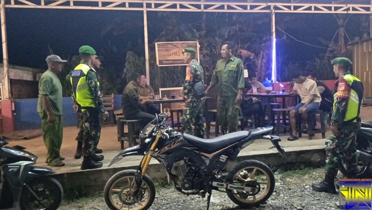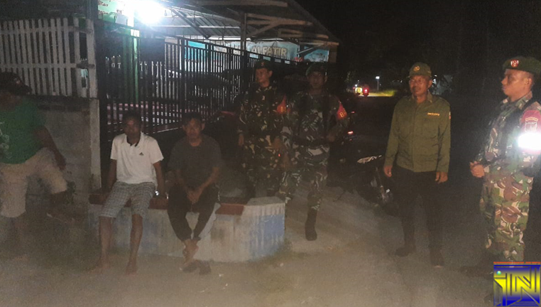 Jaga Kamtibmas, Koramil Tibawa dan Linmas Gelar Patroli Bersama di Tiga Titik Strategis