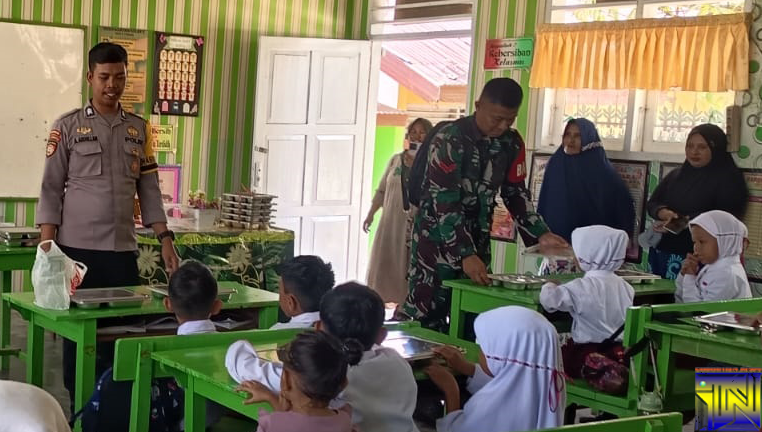 Generasi Sehat Menuju Indonesia Emas 2045, Babinsa Bersama Guru Dampingi Makan Bergizi Gratis