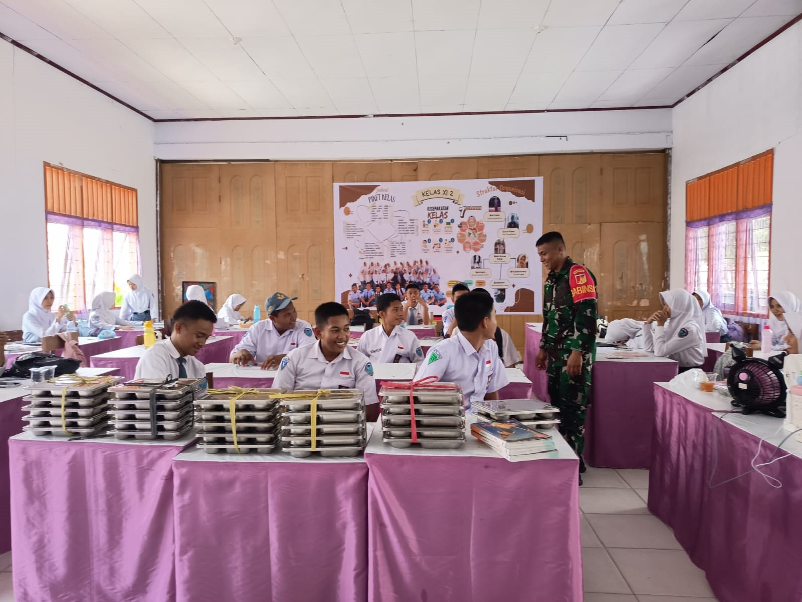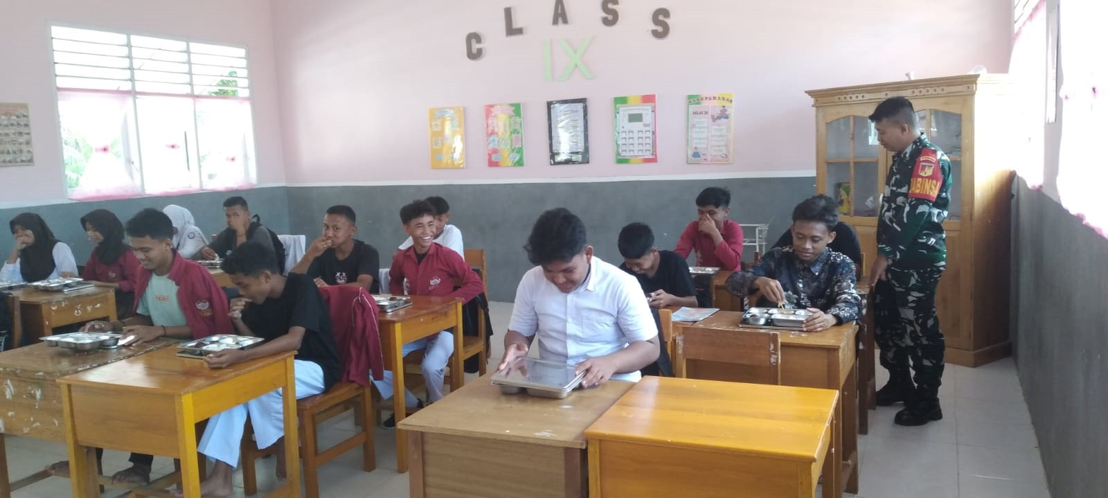 Babinsa Koramil 1315-04 Tibawa Dampingi Kegiatan Makan Bergizi Gratis di Kecamatan Tibawa