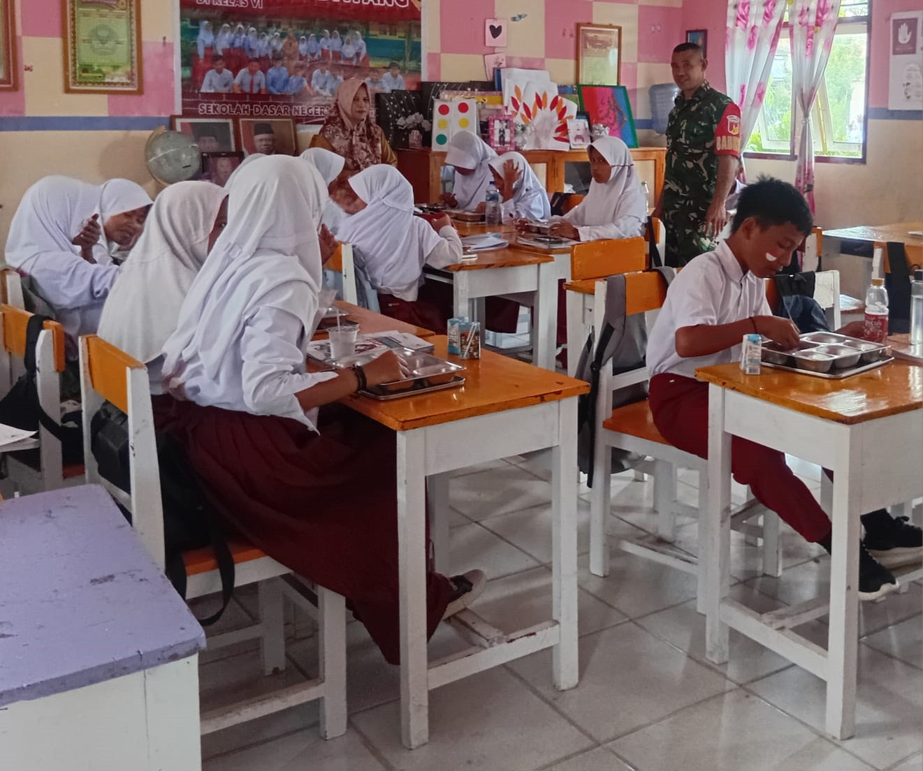 Babinsa Koramil 1315-04 Tibawa Dampingi Kegiatan Makan Bergizi Gratis di Kecamatan Tibawa Kabupaten Gorontalo