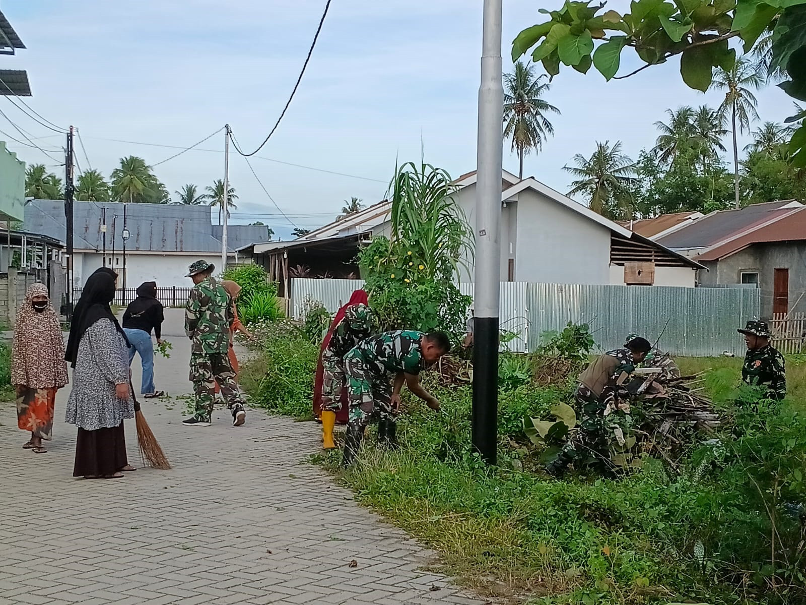 Gotong Royong Warga Dan Koramil 1315-01/Telaga Ciptakan Lingkungan Desa Tenggela Bersih