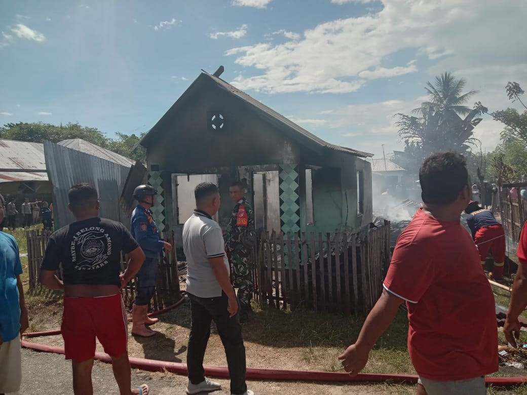 Babinsa Koramil 1315-01 Telaga Sigap Membantu Warga Saat Tiga Rumah Terbakar Di Desa Bulota