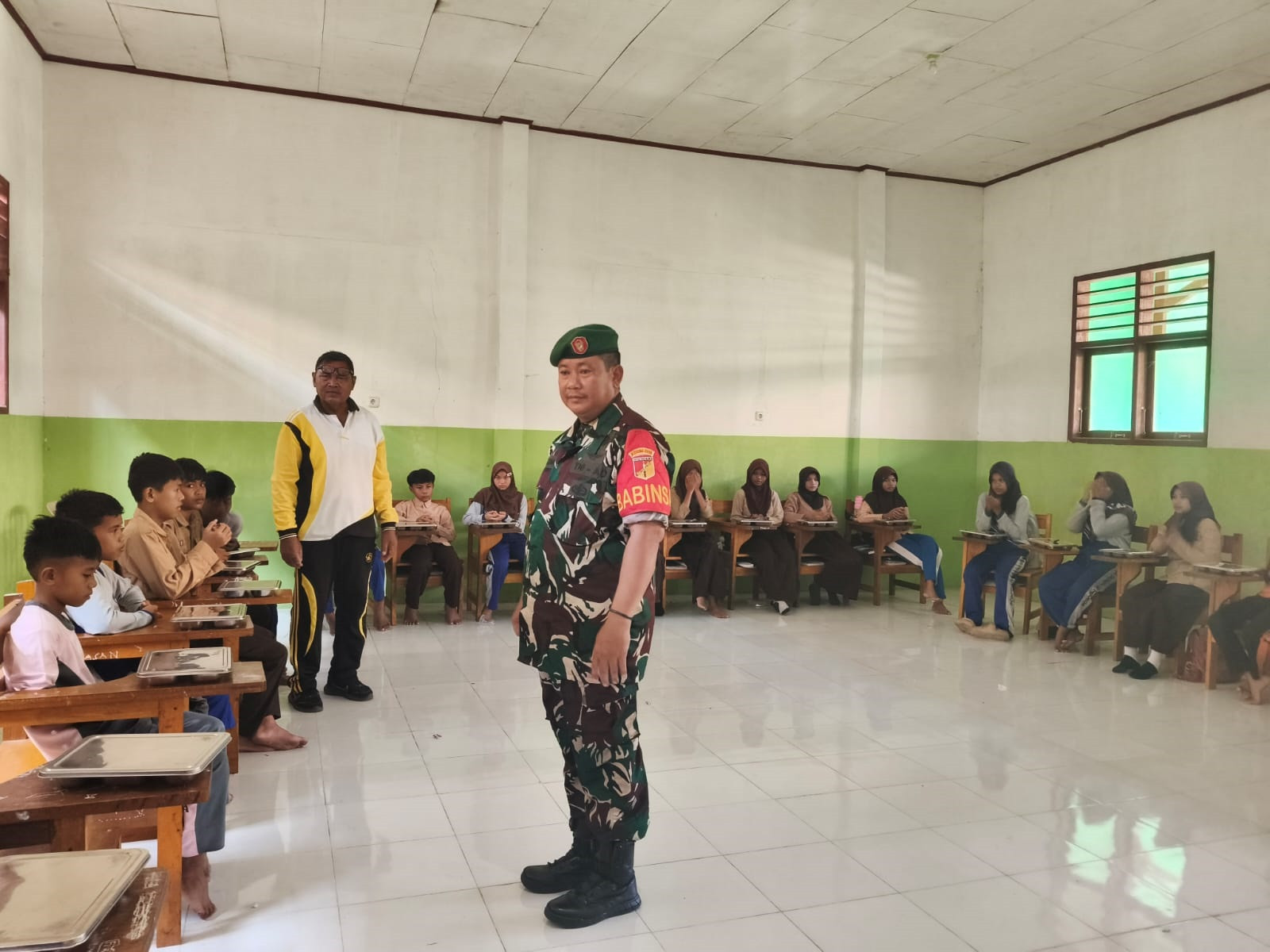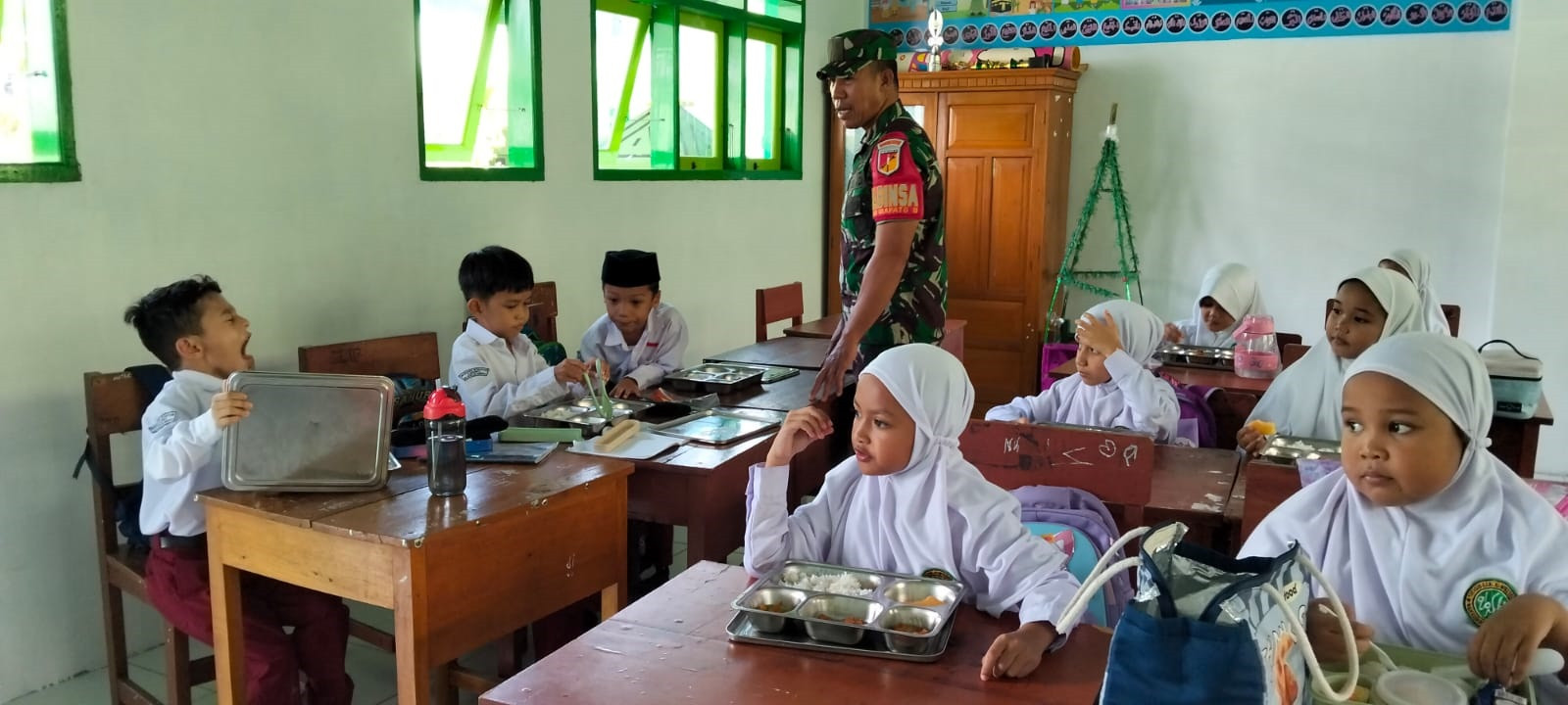 Babinsa Koramil 1315-01 Telaga Biru Dampingi Makan Bergizi Gratis di Sembilan Sekolah Kecamatan Telaga