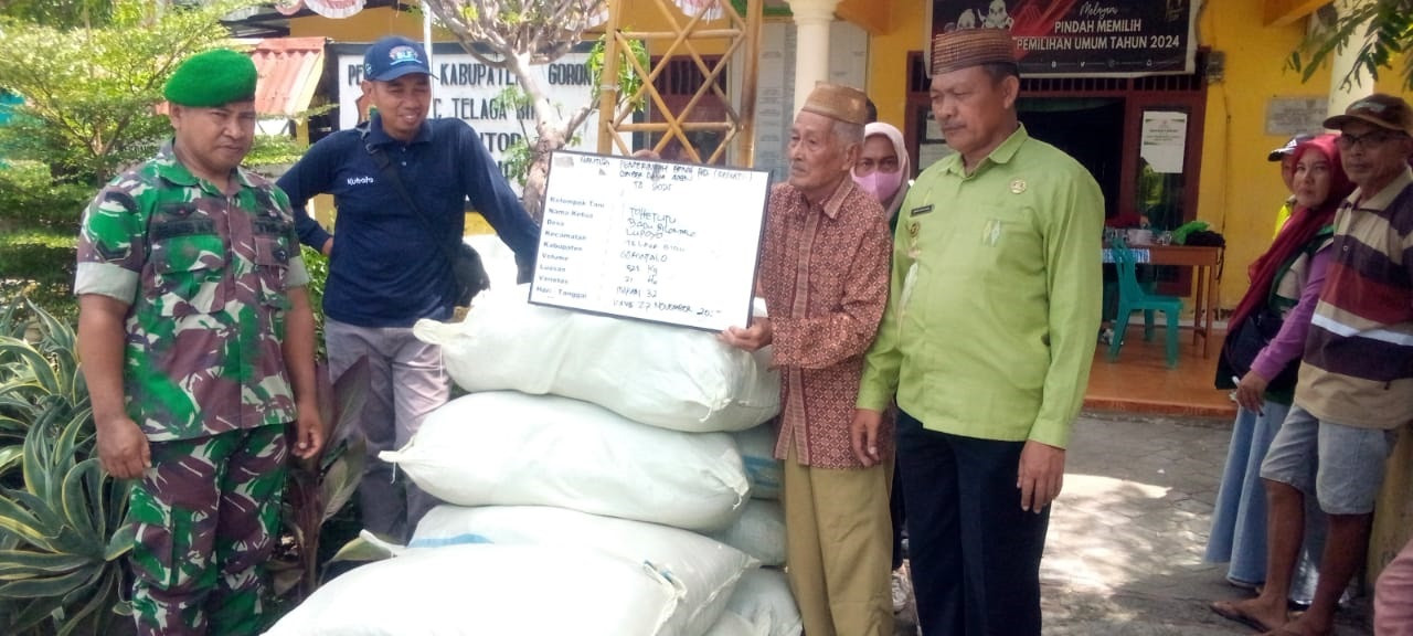 Penyaluran Benih Padi Inpari 32 Babinsa Koramil Telaga Pastikan Proses Aman dan Lancar