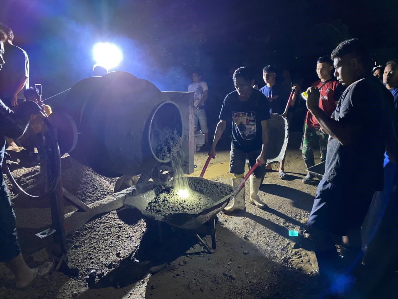 Langkah Kecil Ibu-Ibu Desa Tonala Membawa Kehangatan di Tengah Malam untuk Prajurit TMMD yang Terus Bekerja di Jalan Rabat Beton