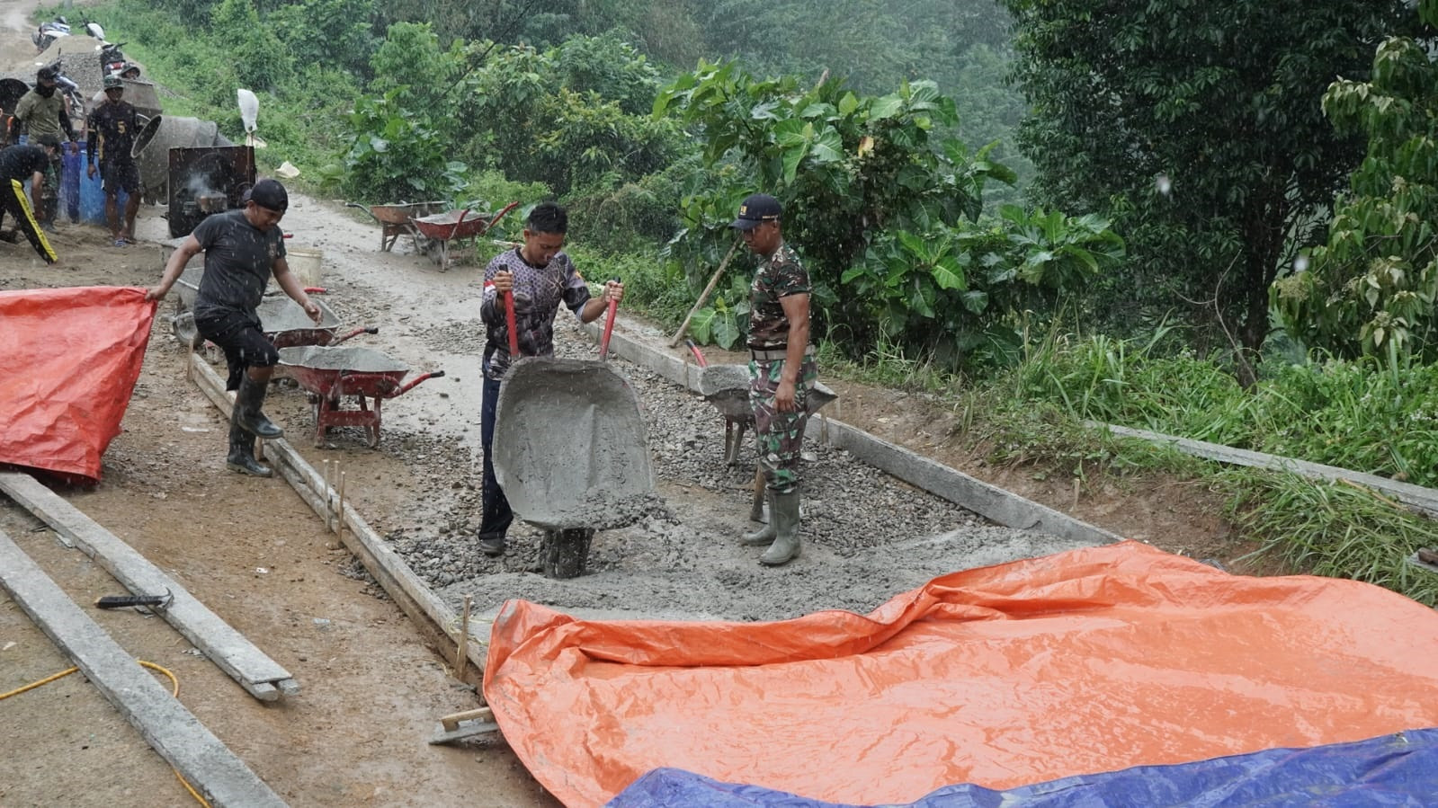 Hujan Tak Hentikan Langkah Satgas TMMD di Desa Tonala Semangat Tetap Menyala Meski Pekerjaan Jalan Rabat Beton Meleset dari Jadwal