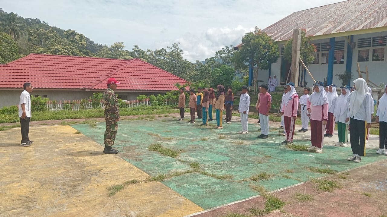 Semangat Disiplin Tumbuh di Lapangan Sekolah Saat Siswa SMPN 4 Satap Telaga Biru Dilatih Langsung oleh Prajurit Kodim 1315 Kabupaten Gorontalo