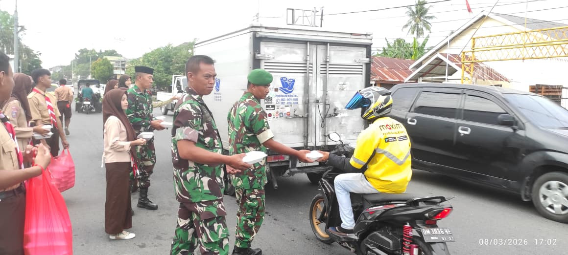 Gorontalo, 8 Maret 2026 — Personel Koramil 1315-01 Telaga bersama Anggota Saka Wira Kartika melaksanakan kegiatan pembagian takjil kepada masyarakat sekitar. Kegiatan mulai pukul 17.00 Wita di depan Koramil . . . 0