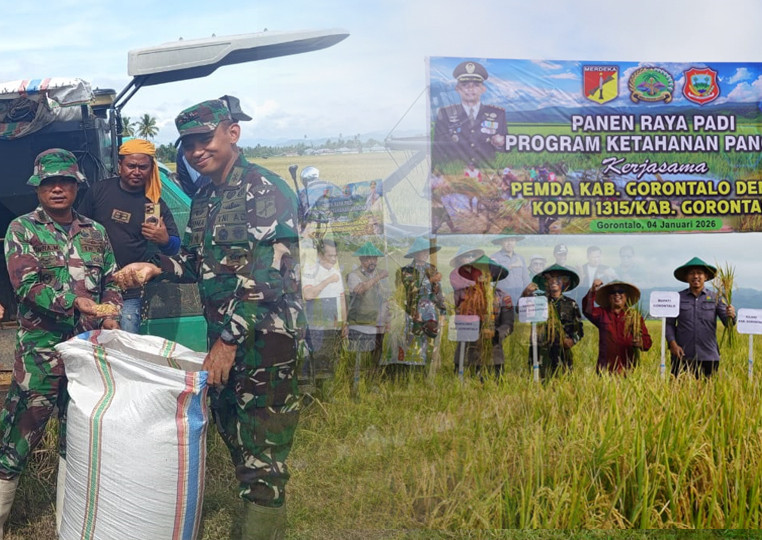 Gorontalo, 04 Januari 2026 – Letkol Arh Roma Laksana Yudha, S.A.P., M.Sos., selaku Dandim 1315/Kabupaten Gorontalo bersama jajaran Forkopimda Kabupaten Gorontalo hadir di tengah petani melaksanakan panen raya . . . 0