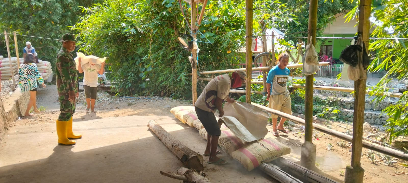 Gorontalo, 31 Maret 2026 – Babinsa Koramil 1315-03/Tabongo Kopda Sholeh hadir memantau proses penggalian jembatan gantung. . . . 0