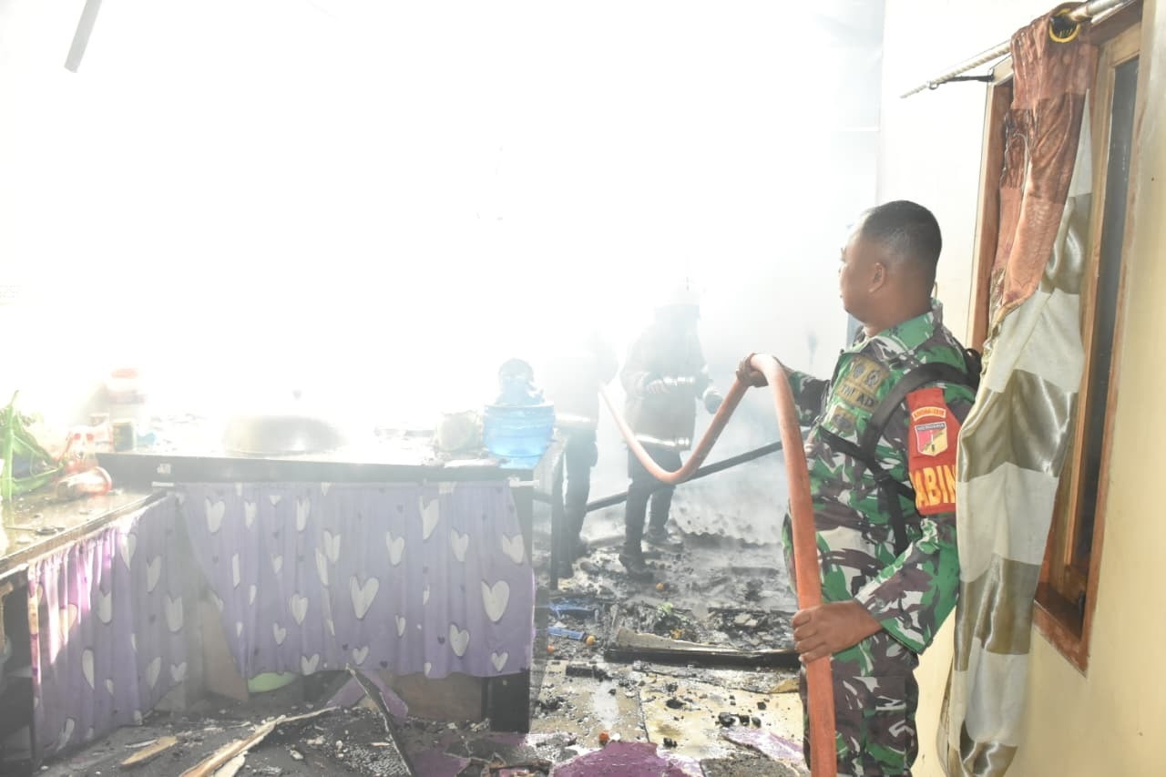 Babinsa Koramil Tibawa Bergerak Cepat Bantu Warga Saat Kebakaran Rumah di Dusun Tumba Desa Pongongaila Pulubala