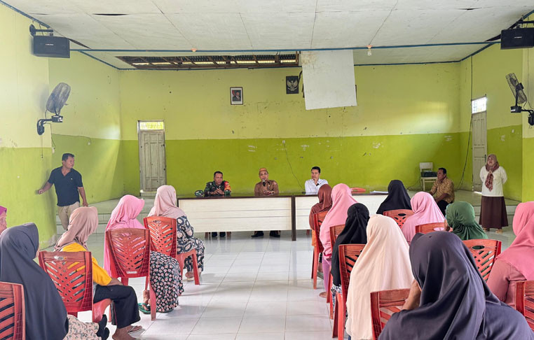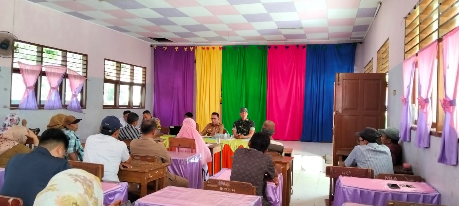 Babinsa Koramil 01 Telaga Biru Dampingi Musyawarah Sengketa Batas Tanah Bangunan SDN 17 Dan SMPN 8 Satap Telaga Biru