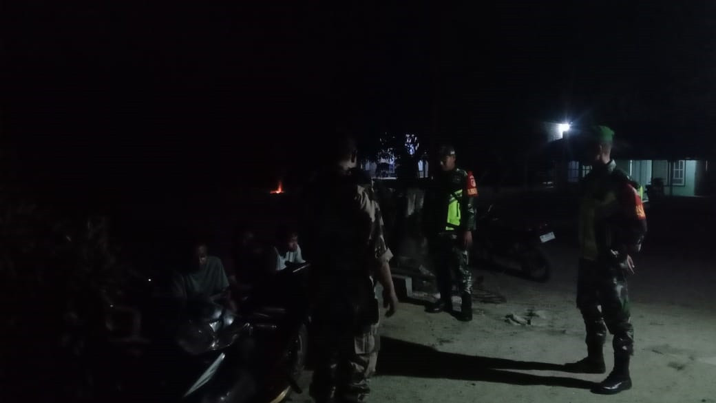 Patroli Malam Koramil Tibawa Bersama Linmas dan Ansor Menyusuri Desa Menjaga Keamanan dan Ketertiban Wilayah
