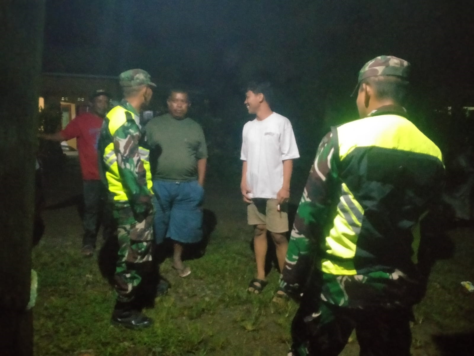 Sertu Jemris K Yalani Pimpin Patroli Malam Bersama Linmas Dan Tokoh Agama Demi Ciptakan Rasa Aman Di Telaga Biru Gorontalo