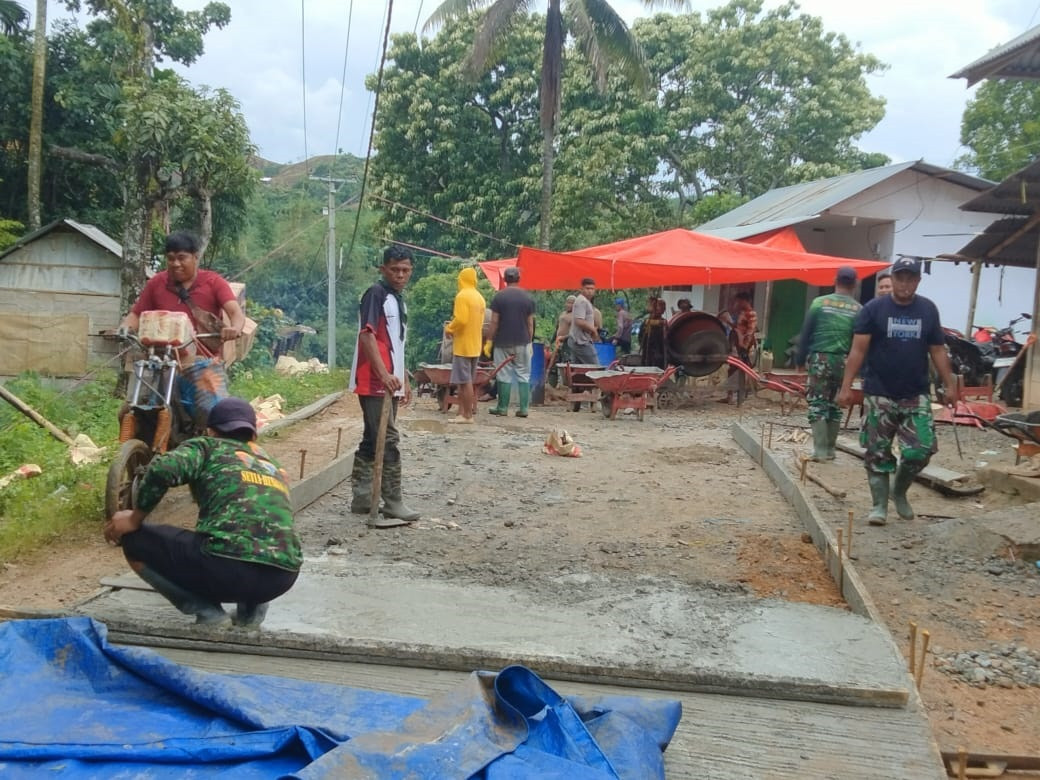 Semangat Tak Pernah Surut Meski Dihantam Hujan Satgas TMMD dan Warga Telaga Biru Kembali Menyatu di Jalan Rabat Beton