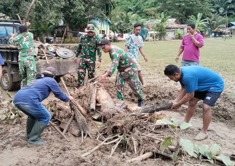Kolaborasi Koramil 1315-05/Boliyohuto Dan Pemkab Gorontalo Bantu Pulihkan Lingkungan Pasca Banjir Bilato